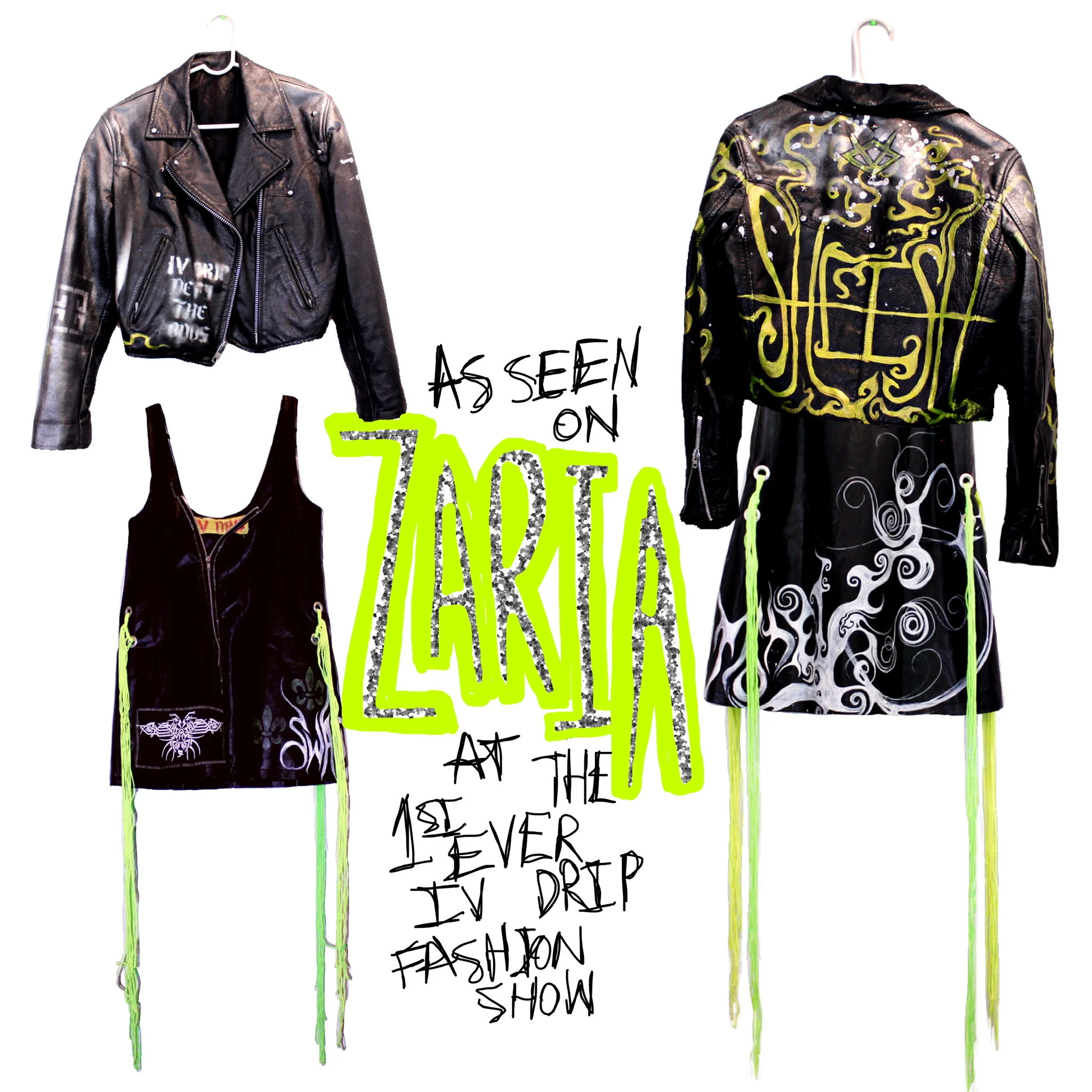 Photo by Nathan Lopez Model Zaria Bunn wearing the SHINY SHEESH SUPERSTAR JACKET and the SWAG MONEY ZIP IT DRESS Makeup by Samantha Olsen On stage at the Orange Peel in Asheville, NC