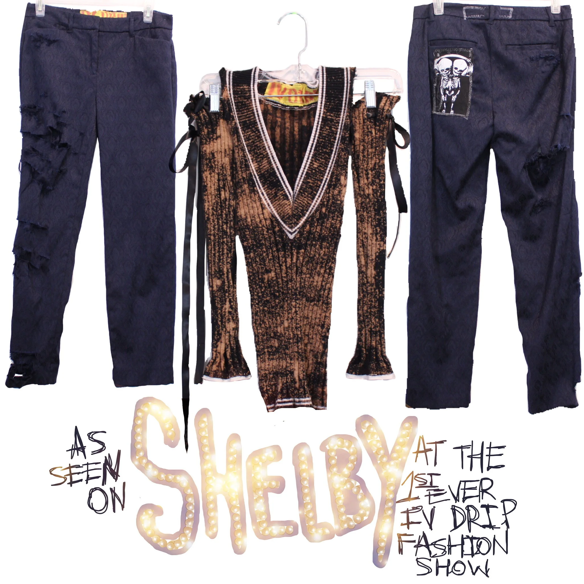 Photo by Nathan Lopez Model Shelby Lynn wearing the GODDESS OF THE NIGHT VEST W/ GLOVES and the DISTRESSED DRESS PANTS Hair and Makeup by Samantha Olsen On stage at the Orange Peel in Asheville, NC