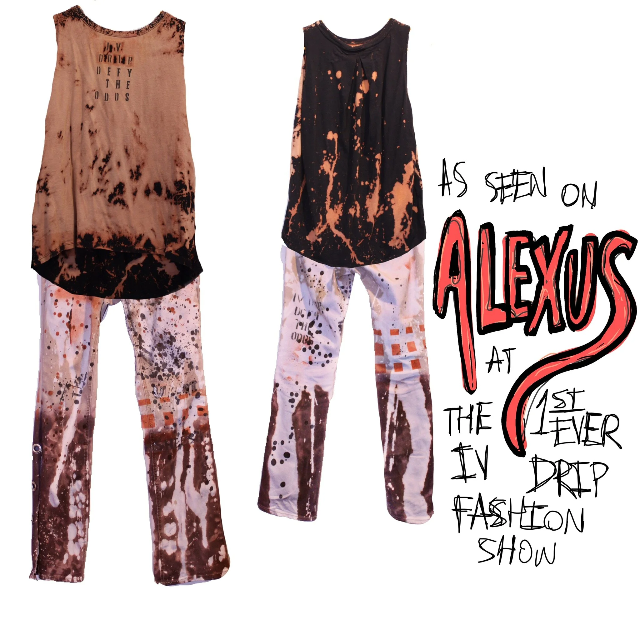 Photo by Nathan Lopez Model Alexus Hall wearing the CONTRAST BLEACH CLOUDS TANK TOP and the URAQT / SHEESH WARRIOR JEANS Makeup by Lindsey Smith On stage at the Orange Peel in Asheville, NC