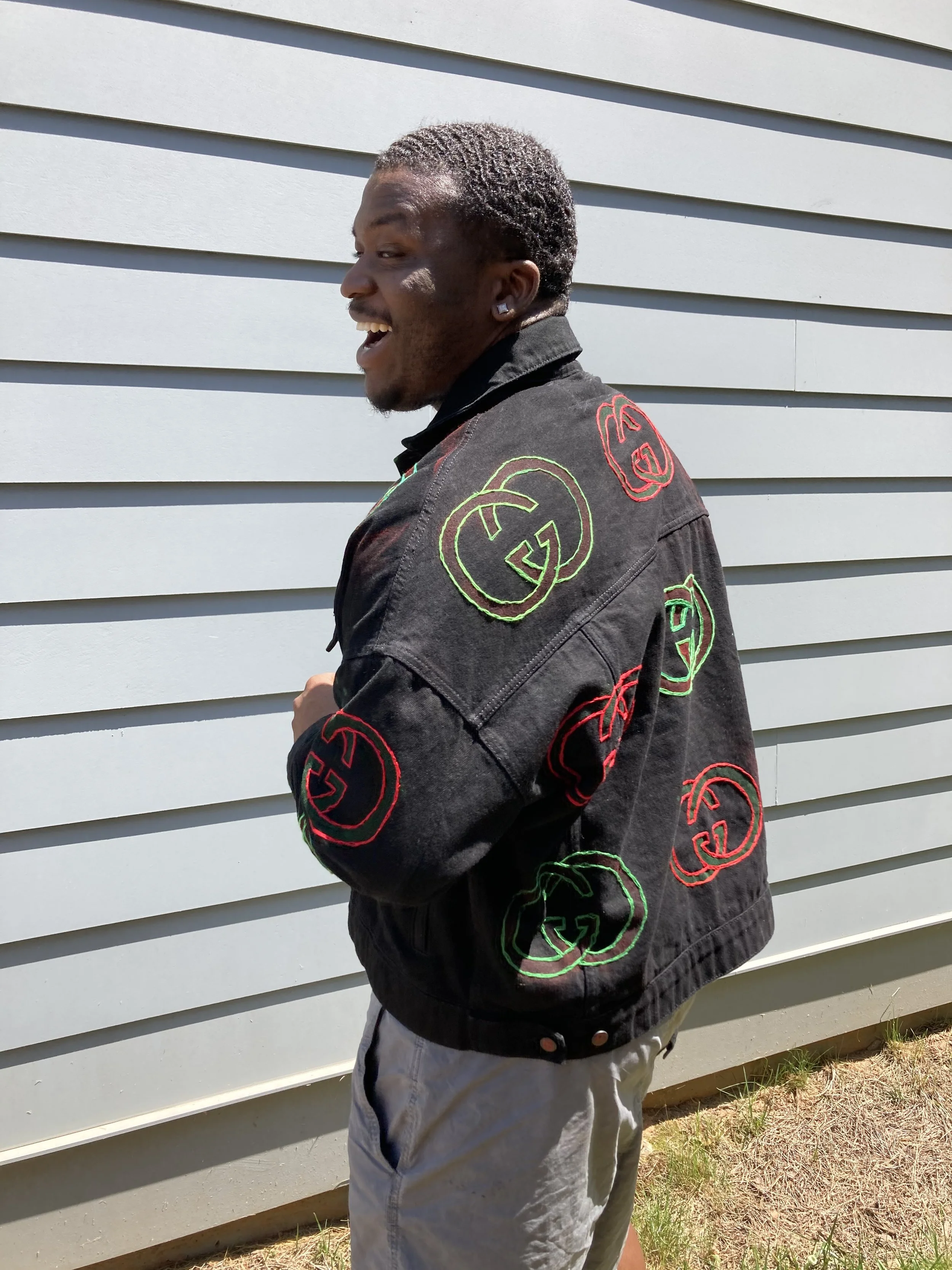 Frank wanted a custom jacket with a GUCCI theme to match his new GUCCI kicks. I was thrilled to hear this!!!!
